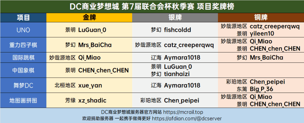 第7届联合会杯秋季赛虽然落下了帷幕,但欢乐与热情还在延续。玩家们在棋牌桌上比拼技艺,也在比赛中收获了笑声和友谊。期待大家在冬季赛再次集结,一起继续享受Minecraft里的竞技乐趣!